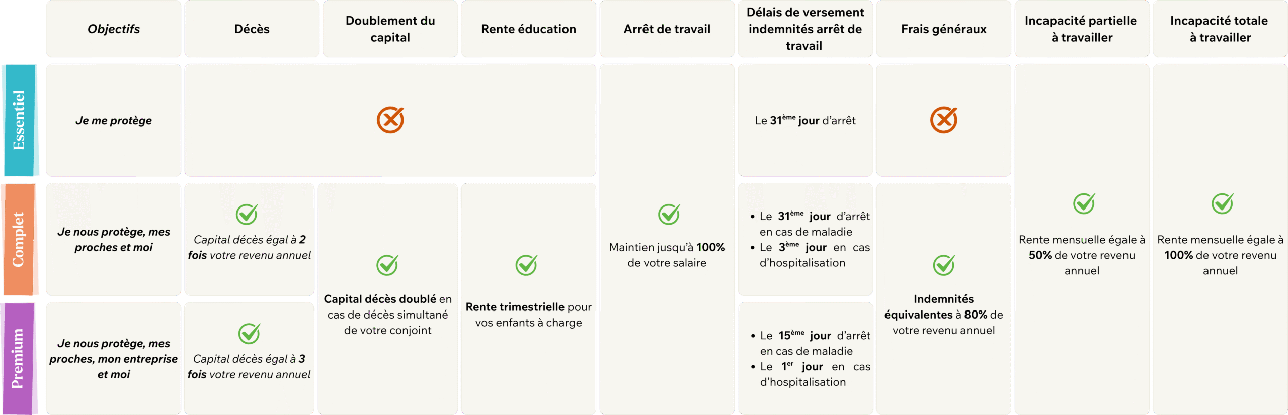 Nos offres sont entièrement modulables. Choisissez la protection qui vous ressemble ! Découvrez le tableau complet des garanties
